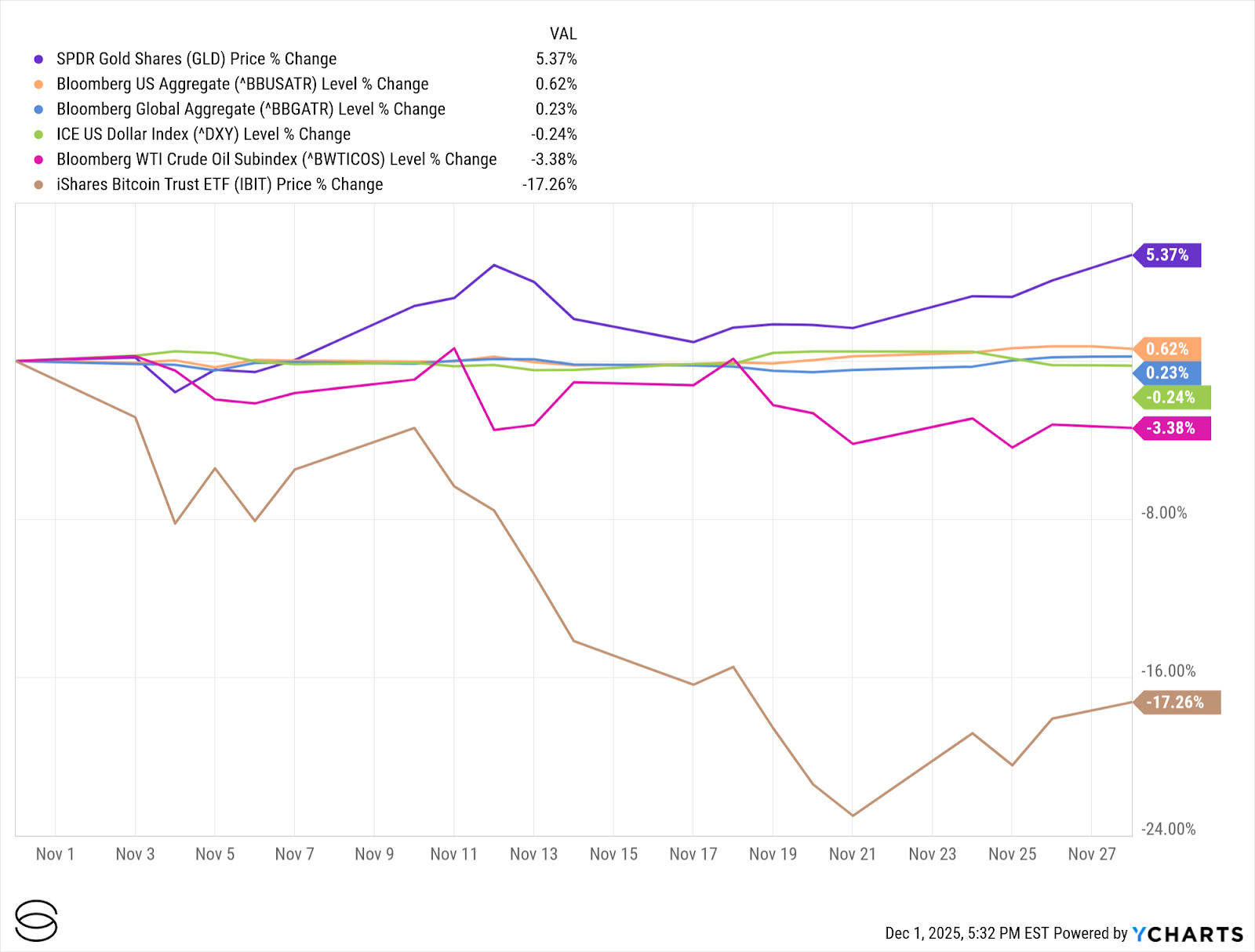 November was a month of contrasts. While equity markets wrestled with bouts of volatility and uneven leadership, the more important story, in our view, was the market's growing confidence in the disinflation trend and the clearer path it sets toward easier monetary policy. Even without an official October CPI release, investors leaned on earlier data and alternative indicators to reaffirm the idea that inflation is continuing to cool. That shift helped pull long-term yields modestly lower and supported fixed income valuations.