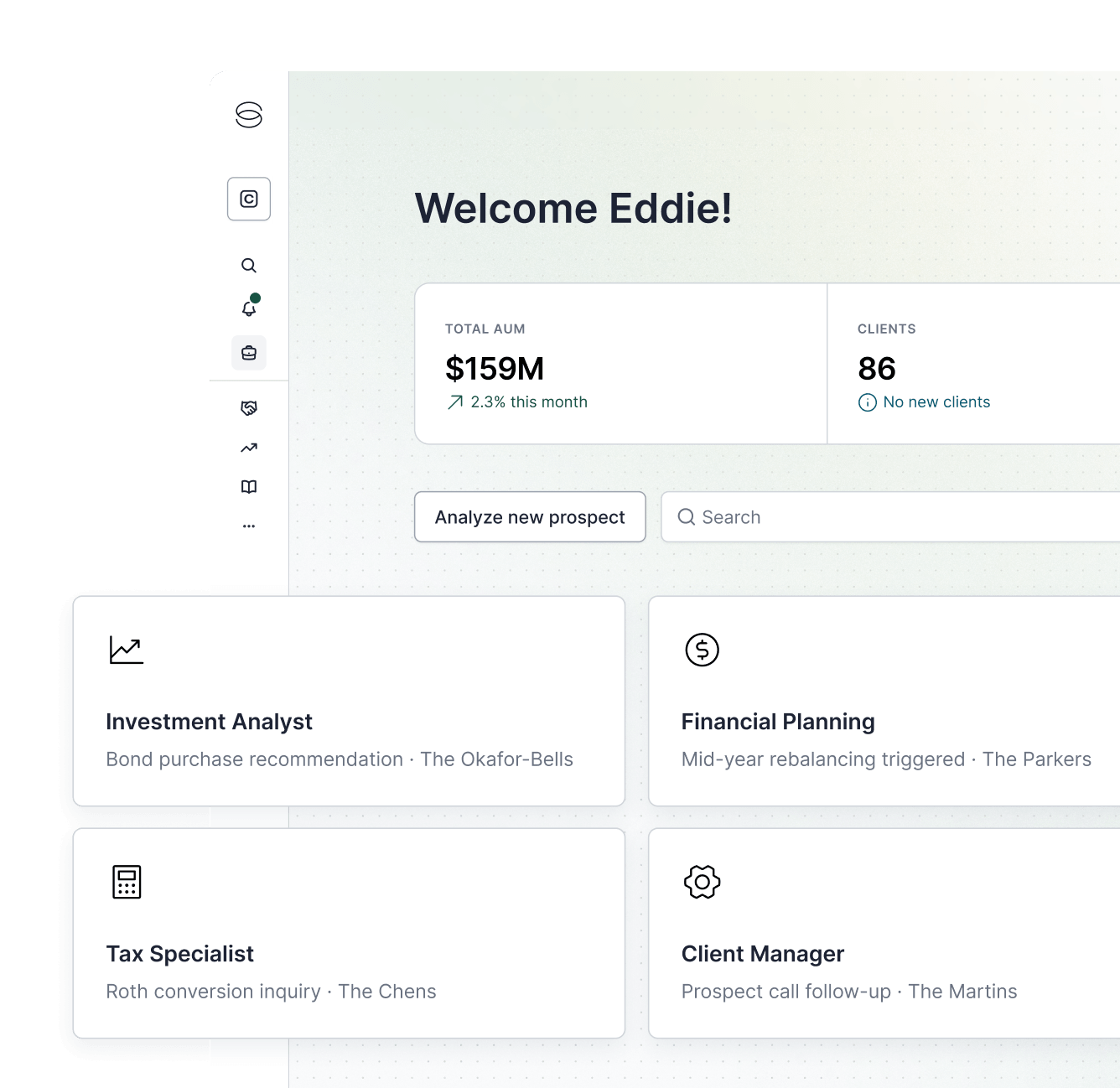 The Planning Agent is the first. From tax strategy and proactive client monitoring to investment management and family office workflows, each new agent builds on the same unified data, so every addition makes the whole platform more powerful.
